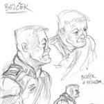 Mystery press už vydal všechny romány mé Arkardské série… s výjimkou toho prvního: Měsíc mého života. Karel Jerie si už udělal čas na ilustrace a poslal první skici. Dědka Čucháka a Kubu Nedomého má už dlouho takříkajíc v paži, právě tak jako Su Wang-li. Jenže teď přicházejí obrazově nezpracované postavy. Jak třeba vypadá Bejček, bývalý