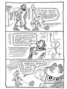 S comicsovým Pérákem se ozývám podruhé. Třeba vás napadne, jak dlouho mě to bude bavit. No, do foroty jich mám ještě deset… a nezdá se, že by mě to pustilo. Práce na audioverzi Péráka pokračuje, příští rok by měl být na Audiotéce venku. Pořád ale bádám, jak z toho udělat příběh pro knižní podobu. Fakticky je Pérák nesmysl. Nikdo nemůže na pérech skákat přes baráky. Musela by to být nadsázka. Bude někoho bavit? A hlavně, bude mě bavit v takové nadsázce psát? V tom totiž všechno vězí, nejdřív věc musí bavit autora a pak teprve, eventuálně, může uvažovat o tom, aby to bavilo laskavého čtenáře.