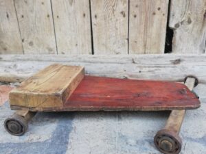 Od jara do podzimu jsme jezdili na ložisácích. To byly dřevěné vozíky s pevnými dřevěnými nápravami, přední řiditelnou nohama, s naraženými kuličkovými ložisky o průměru cca deset centimetrů. Ložiska byla vzácná a chlapci, jejichž otcové je mohli krást ve fabrikách, byli váženi. Ložisák nejezdil rychle, vozík vyrobený z obyčejného kočárku ho snadno předhonil. Jenže frajeři jezdili na ložisácích, kdežto kdo měl kočárkovou konverzi, byl srab. Impozantní na ložisáku byl jen hluk, vyluzovaný na asfaltu ujíždějícími ložisky. Sháněl jsem teď fotku ložisáku a našel jen jednu… na Etsy.com. Z dolarů přepočteno na koruny za 6500, nicméně je to autentický ložisák, jak má být. Nevím jestli je americký, ale ty naše vypadaly právě takto.