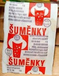 Bývaly různé šumáky. Některé byly v pytlíčcích v podobě jemných krystalků – neklame-li mě paměť, na pytlíčku byl namalován kuchaříček v bílé čepici, s nadšením ve tváři lemtající božský nápoj šumák.